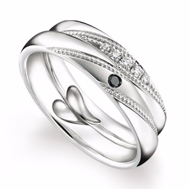 男裝: 18K白金, 珠邊, 磨沙面,1粒圓形黑色鑽石,共約重0.02卡 ($9000)